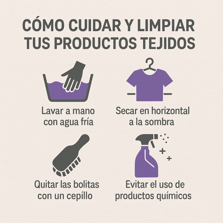 Algunos emprendedores incluyen recomendaciones específicas según el tipo de lana, hilo o mezcla de fibras. Si no tenés la etiqueta, seguí esta guía general.